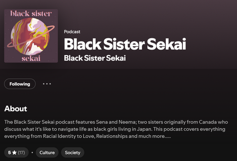 This is a podcast project that I created with my sister. In this podcast my sister and I discuss what it's like to navigate life as black girls living in Japan. This podcast covers everything everything from racial identity, language learning, cultural differences, romantic relationships and much more.....